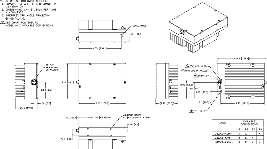 MHPxxx-yyADM-A1系列電源(前型號(hào)  N31xxx-yyADM)工作頻率為24–260MHz,標(biāo)準(zhǔn)射頻輸出功率為2至20W,最大輸出功率由內(nèi)部電位器設(shè)置,帶有模擬和數(shù)字調(diào)制,在50Ω負(fù)載時(shí)輸出高達(dá)20W。該驅(qū)動(dòng)器設(shè)計(jì)用于驅(qū)動(dòng)聲光調(diào)制器。