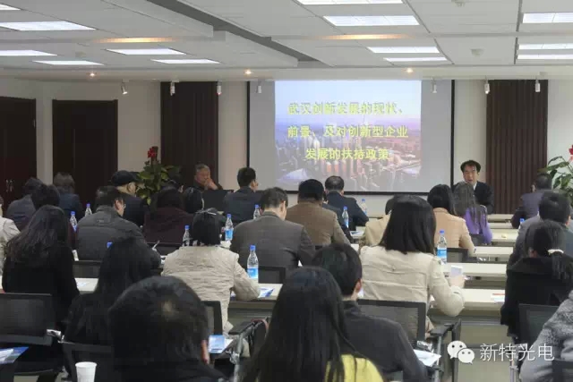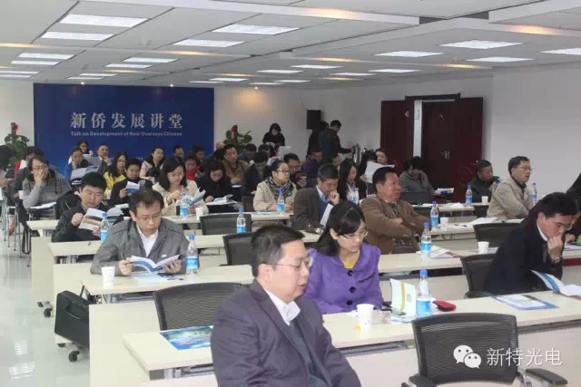 “新僑發(fā)展講堂”于上于2014年11月11日上午9:00在新特光電工業(yè)園內(nèi)為僑服務(wù)中心開講,武漢市僑聯(lián)主席秦峰致開講辭,武漢市科技局副局長(zhǎng)趙峰、 武漢市科技局調(diào)研員李和宇為我們解讀“武漢創(chuàng)新發(fā)展的現(xiàn)狀、前景及對(duì)創(chuàng)新型企業(yè)發(fā)展的扶持政策”,深度介紹武漢市有關(guān)科技項(xiàng)目的申報(bào)、評(píng)審,為申請(qǐng)武漢市 的科技項(xiàng)目答疑解惑,幫助新僑專業(yè)人士獲得政府科技基金支持!