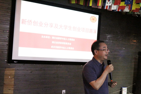 2016年7月20日下午,“湖北新僑創(chuàng)業(yè)分享及大學生項目路演”活動在華中科技大學青創(chuàng)空間舉辦,三位新僑嘉賓分享了自己的創(chuàng)業(yè)故事,四支大學生創(chuàng)業(yè)團隊現(xiàn)場路演。該活動由湖北省新僑專業(yè)人士聯(lián)誼會、湖北省僑聯(lián)青聯(lián)委員會、武漢市新僑專業(yè)人士聯(lián)誼會主辦,湖北省僑聯(lián)副主席、省市新僑專業(yè)人士聯(lián)誼會會長陳義紅,輪值會長萬穎,湖北省僑聯(lián)、武漢市僑聯(lián)領(lǐng)導及40余名新僑嘉賓、媒體記者和大學生創(chuàng)業(yè)團隊參加。