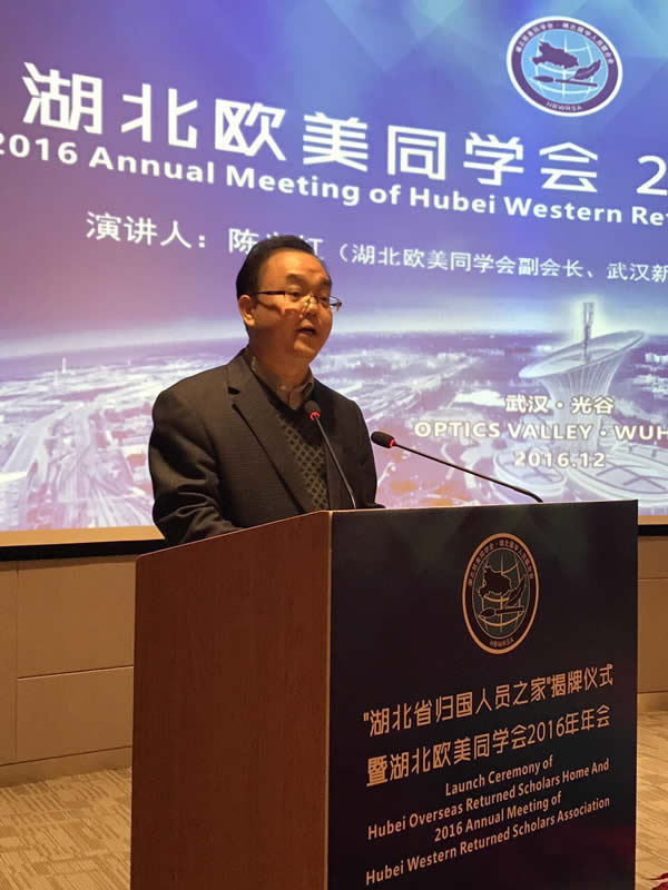 陳義紅在湖北歐美同學(xué)會(huì)2016年年會(huì)上分享創(chuàng)新創(chuàng)業(yè)新成果