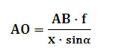 由圖2可知入射光AO與基線AB的夾角為α,AB為激光器中心與CCD中心的距離,BF為透鏡的焦距f,D為被測物體距離基線無窮遠處時反射光線在光敏單元上成像的極限位置。DE為光斑在光敏單元上偏離極限位置的位移,記為x。當系統(tǒng)的光路確定后,α、AB與f均為已知參數(shù)。由光路圖中的幾何關(guān)系可知△ABO∽△DEB,則有邊長關(guān)系: