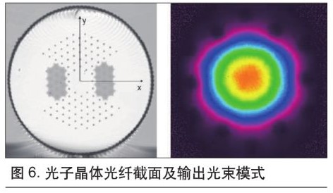 在功率放大器中,丹麥NKT Photonics公司的光子晶體光纖DC-200/40-PZ-Yb可用于數(shù)十微焦耳的飛秒光纖激光器(圖6)。這個光子晶體光纖的模場直徑達到31μm,雖然比普通單模光纖的芯徑大很多,但得益于其特有的光纖結(jié)構(gòu),仍然可以保證基模輸出。